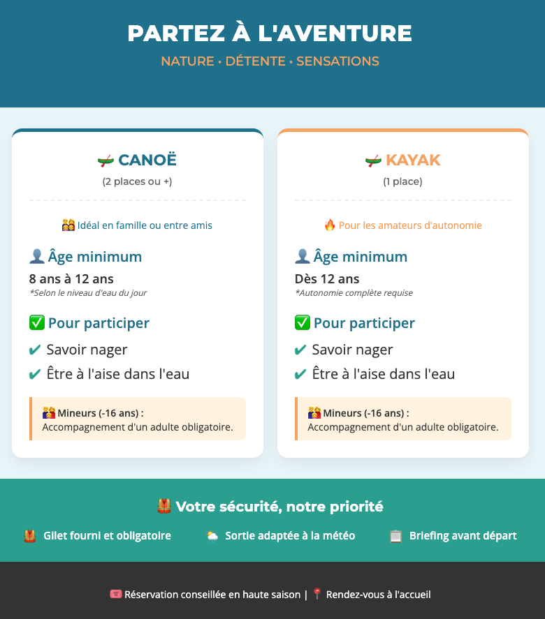 Activity accessible from 8 years old (swimming required, depending on water level).
